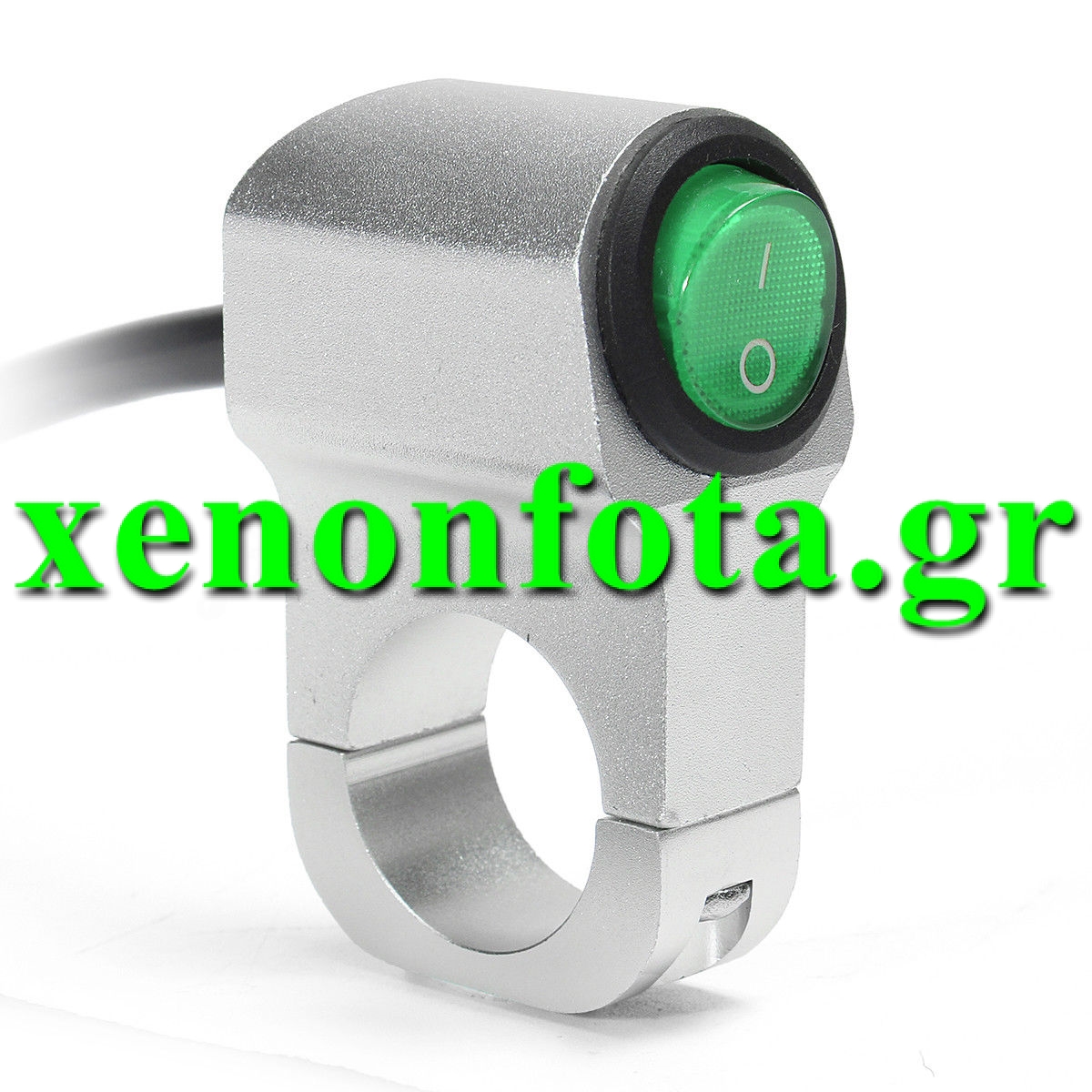 Διακόπτης τιμονιού πράσινος ON/OFF σε ασημί βάση αλουμινίου Κωδικός XF014
