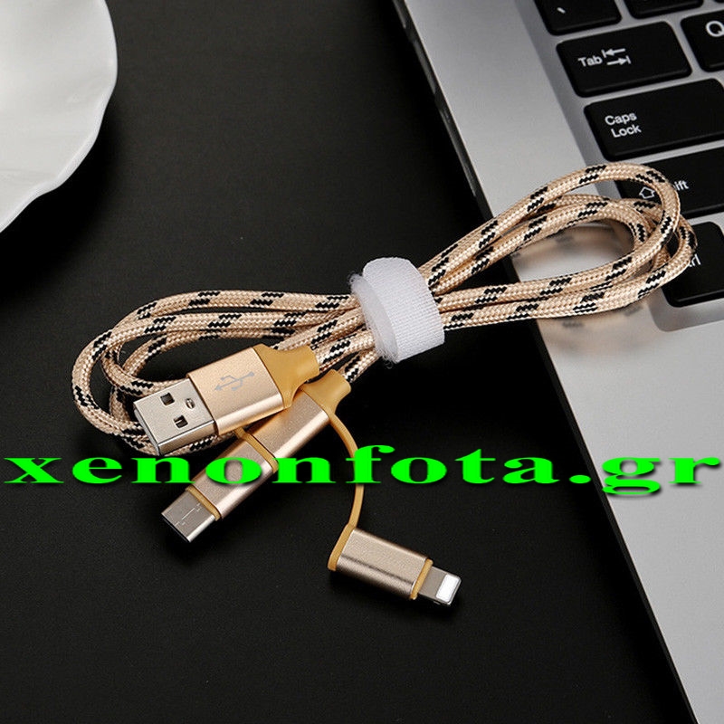 3 σε 1 USB καλώδιο φόρτισης για iPhone/Micro Usb/Type-C Χρυσό χρώμα Κωδικός XF774 Τιμή Τεμαχίου: 8 ευρώ